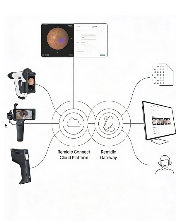 Connect unifies images, AI outputs, clinical reviews, and referrals on a single secure platform. It enables structured review, timely escalation, continuity of care, and auditability, allowing screening programs to scale without compromising clinical quality.
